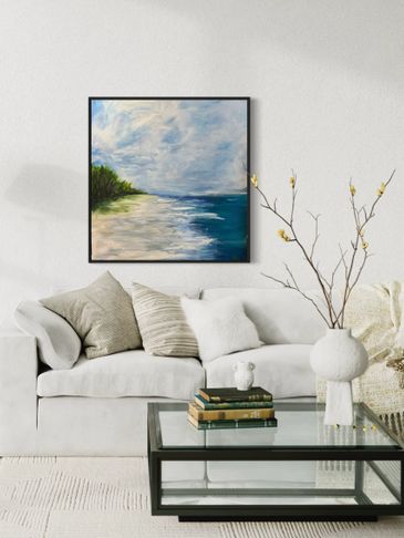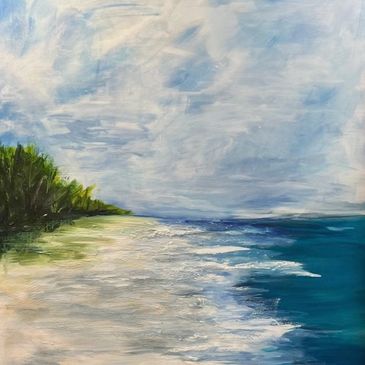This soothing painting has a texture around the sand and waves
